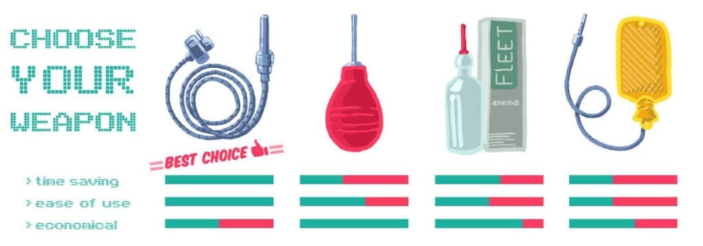 Today I swear by these little balls - what are they officially called? Enema thingies? Since I still don't know, I always paraphrase it rather clumsily: I'm going to flush with my ... flush thing. Well, where was I? The technology. It's not that complicated. Fill the ball completely with lukewarm water, put some spit on your fingers, put it in and squeeze it out. Not squeeze it out completely - I have the feeling that it's a bit too much water for my bowels - but almost completely. Then get up, wait a bit, brush my teeth. And then off to the toilet and out with it. I do the whole thing once or twice more and I'm done. It takes less than 10 minutes and can be done quite spontaneously.
