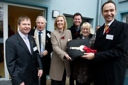 Federal President's wife Bettina Wulff was presented with a large golden key on Friday afternoon in Cologne by the Chairman of the Board of the German AIDS Foundation, Dr Christoph Uleer - as a symbol of the opening of a new housing project for people with HIV/AIDS in Neusser Strasse.
