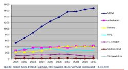 The Robert Koch Institute (RKI) was notified of 2,918 HIV diagnoses last year. This means that there was "no significant change" in 2010 compared to 2009 (2,885 HIV infections). This is according to the Epidemiological Bulletin No. 21/2011 of the RKI.
