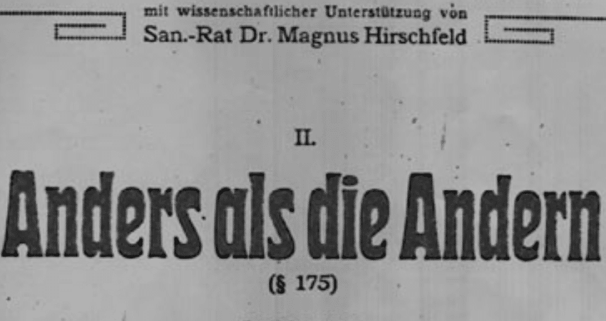 The first German film and one of the first in the world to address homosexuality - Richard Oswald's Different from the others -, was banned in August 1920, over a year after its premiere. Although the production is about the same-sex love between a musician and his adult pupil, there is hardly any affection in the film, let alone a kiss. Nevertheless, the film caused huge controversy and there were protests against its broadcast in many cities across Germany.