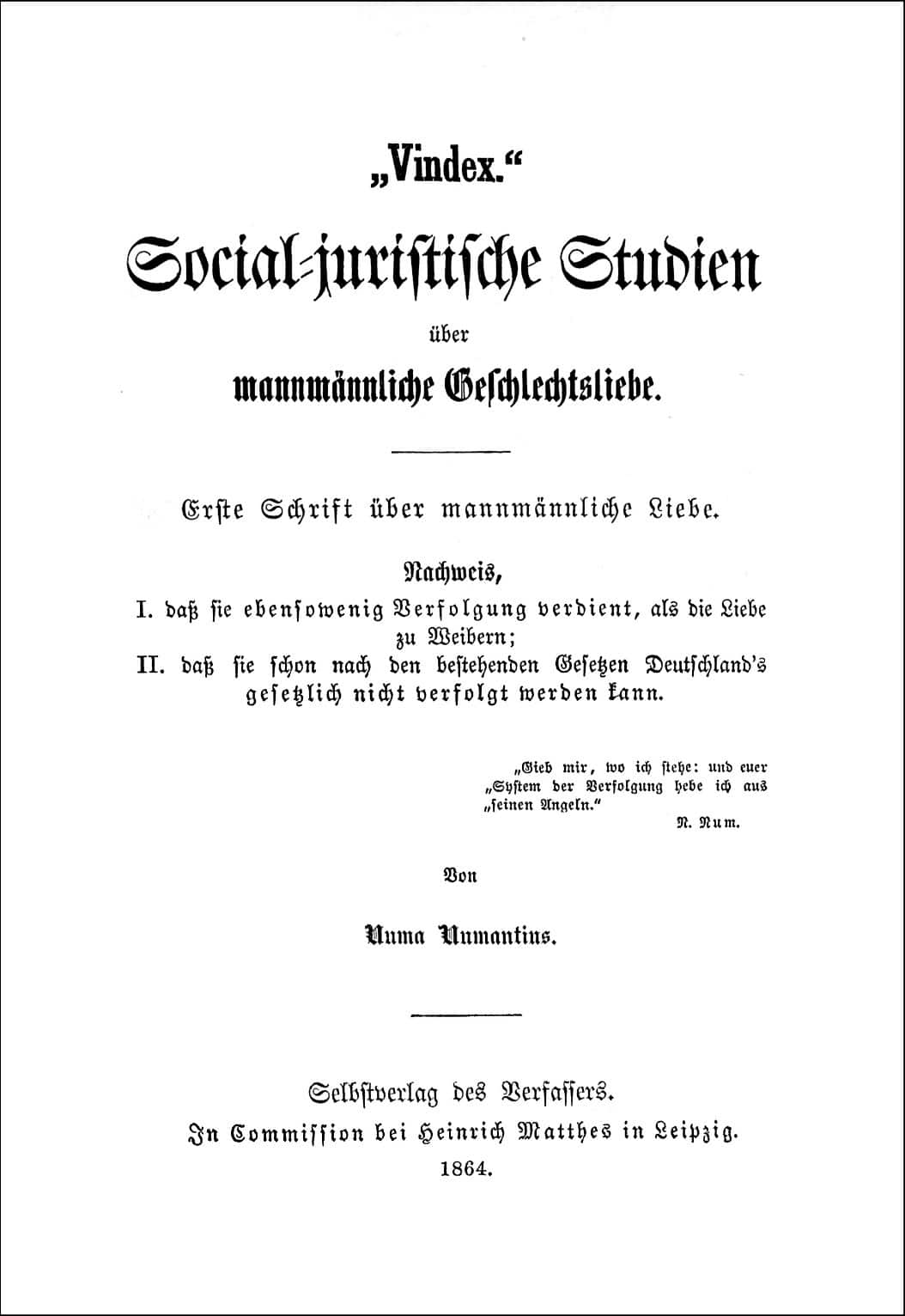 Modern queer activism originated in Germany in the late nineteenth century. The primarily journalistic activity of the early pioneer Karl Heinrich Ulrichs (1825-1895) strongly influenced his later comrades-in-arms. Nevertheless, Ulrichs published his writings under the pseudonym "Numa Numantius", as the consequences of an affirmative treatment of homosexuality could have been serious.