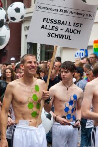 There are two goals: On the one hand, we want to reach straight people and refute stereotypes. On the other hand, we want to promote Startschuss. For some time, the footballers were the only Startschuss section to run in the Hamburg CSD. Simply because we were short of young talent. When we analysed the situation, we asked ourselves: Do gay footballers even know that there is a gay and lesbian sports club in Hamburg? And we had to realise: Most of them know nothing about it. Startschuss is the largest gay and lesbian club in the city, but it was barely present in the public eye. Fortunately, that has changed in recent years - also thanks to our CSD campaigns.