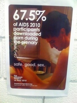 Die Porno-Behauptung war nicht die einzige liebevoll gefälschte Prozentzahl auf der 18. Internationalen AIDS-Konferenz. Wer nach einer Wiener Nacht am Morgen ins Tagungscenter zurückkam, wurde dort möglicherweise von der Aussage empfangen: „82,5 Prozent der Tagungsteilnehmer haben letzte Nacht masturbiert“.
