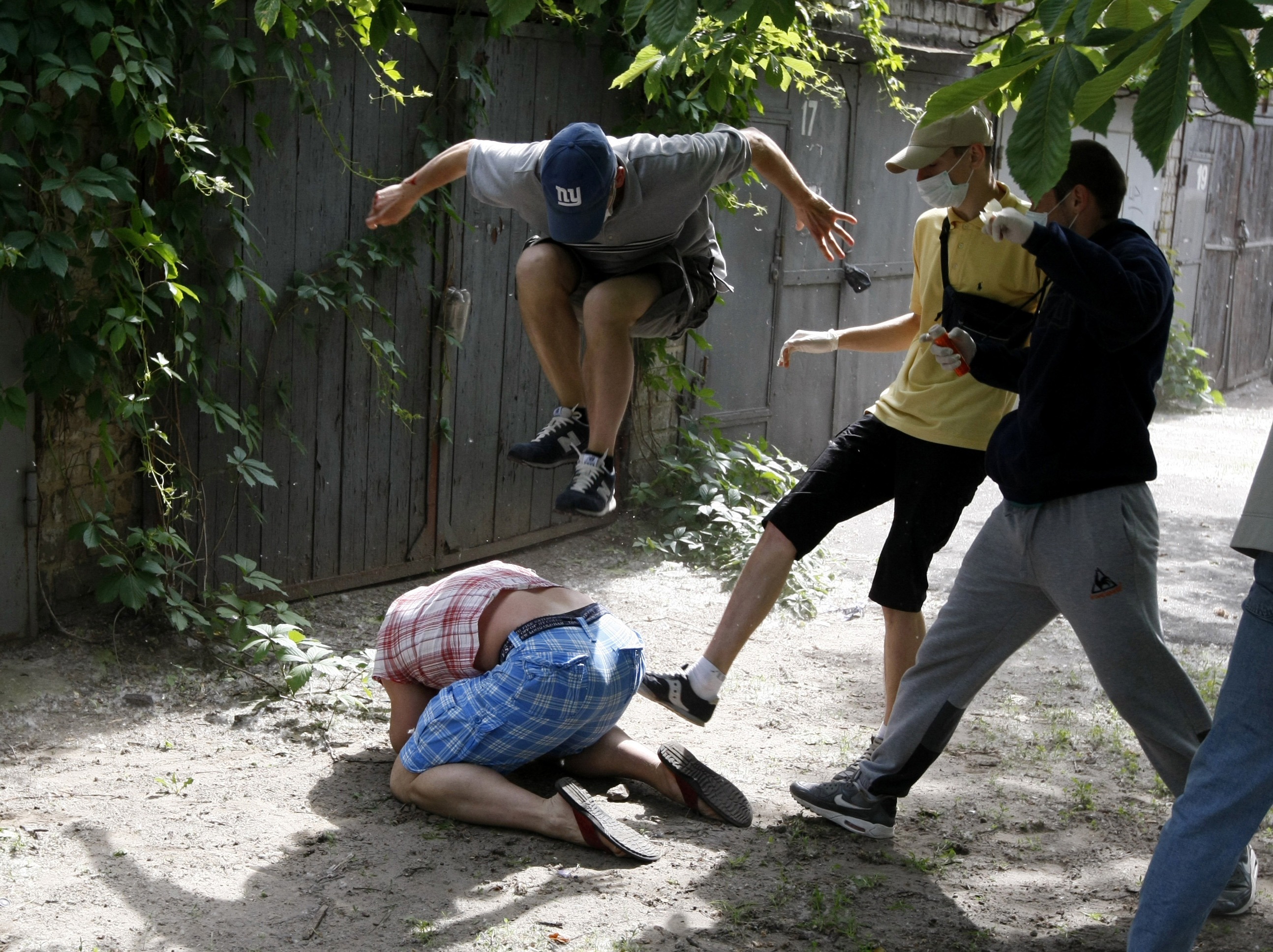 Rechtsradikale Ultras überfallen am Rand des abgesagten Pride den ukrainischen Gay-Aktivisten Svyatoslav Sheremet (Foto: REUTERS/Anatolii Stepanov)