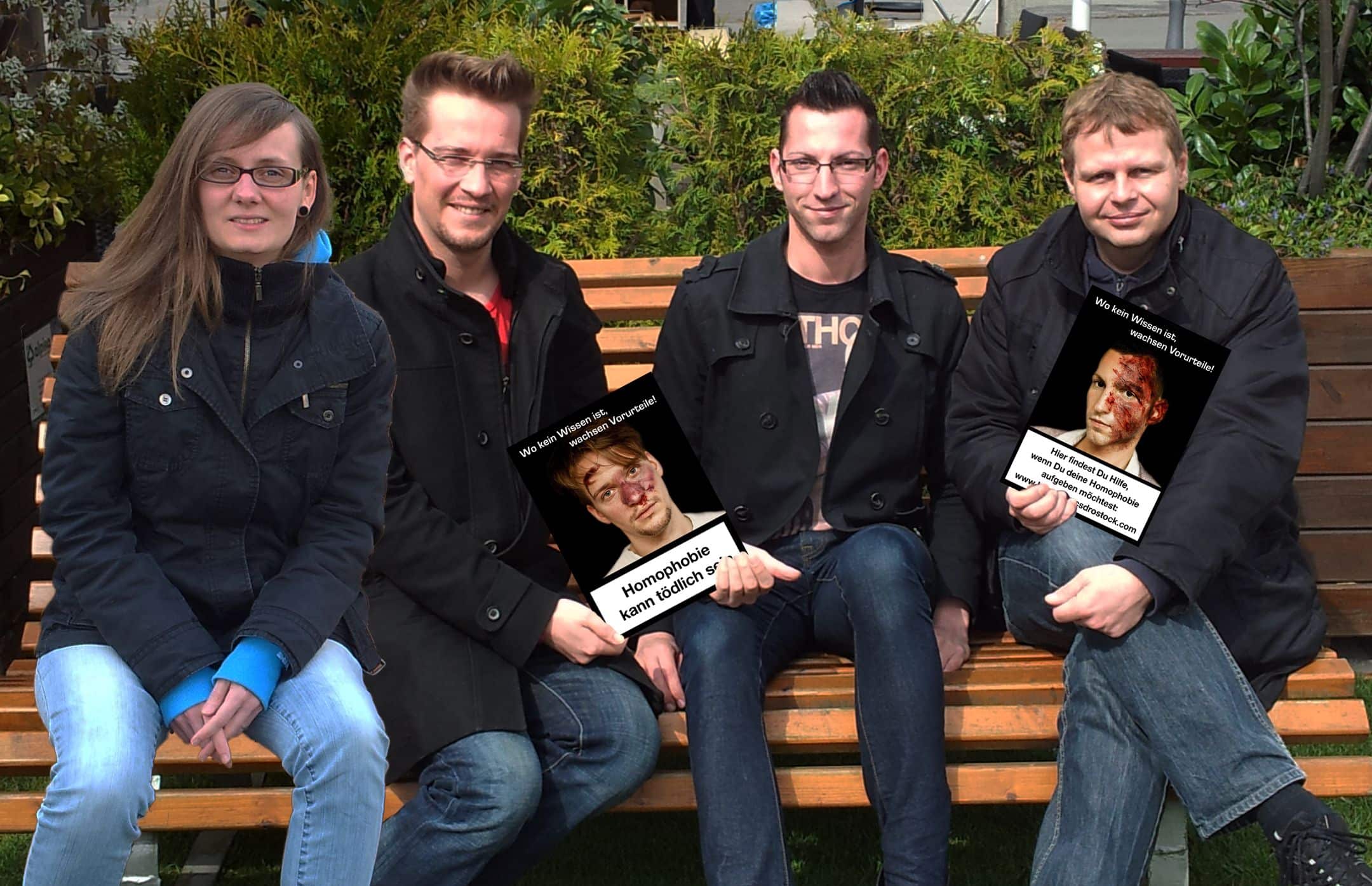 Die Erfinder von "Homophobie, nein danke!": Tine Leiffheidt, Andy Szabó, Hannes Möller und Jörgen Heiser (von links)